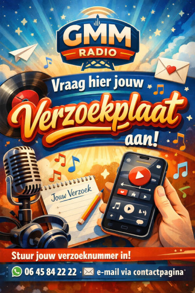 Een verzoekplaat kan u doorgeven onder contact of app +31 6 45 84 22 22, indien mogelijk draaien wij uw favoriet zaterdag tussen 20.00u en 24.00u (Herhaling zondag van 8.00u tot 12.00u), ook zal deze verzoek in die week ook vaker voorkomen in onze muzieklijst.